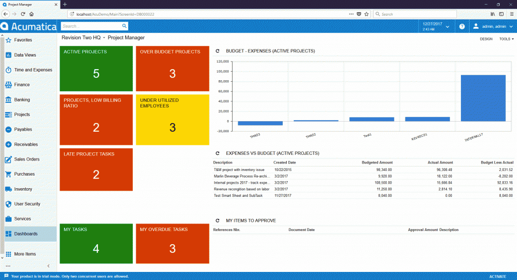 Acumatica Cloud ERP provides the best business management solution for transforming your company to excel in the new digital economy. Built on a future-proof platform with open architecture for rapid integrations, scalability, and ease of use. With Acumatica, you can manage different areas of your business such as finance, distribution, and manufacturing.